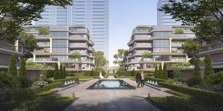 价格:高层均价约34,500元/平方米,叠墅总价区间为950-1,650万元