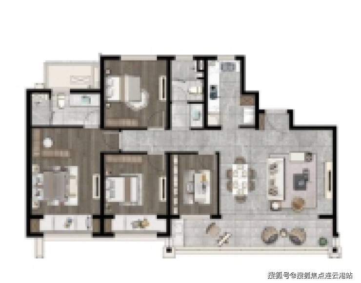 户型:主力户型为105-169㎡的精装三至四房,部分户型配备5.6米横厅阳台、U型厨房及家政间