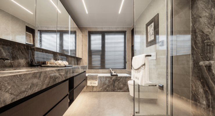 全套劳芬卫浴!主卧当代三件套!甚至还拥有定制美妆冰箱以及双面奢石背景墙!