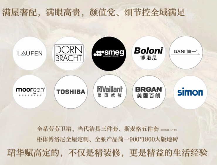 在精装品牌和精装细节上,珺华赋直接拿出了板块内第一梯队的精装配置!
