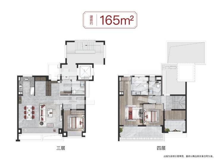 165-185㎡上叠/下叠:上叠享星空露台,下叠带私家花园,实得面积最高达220㎡