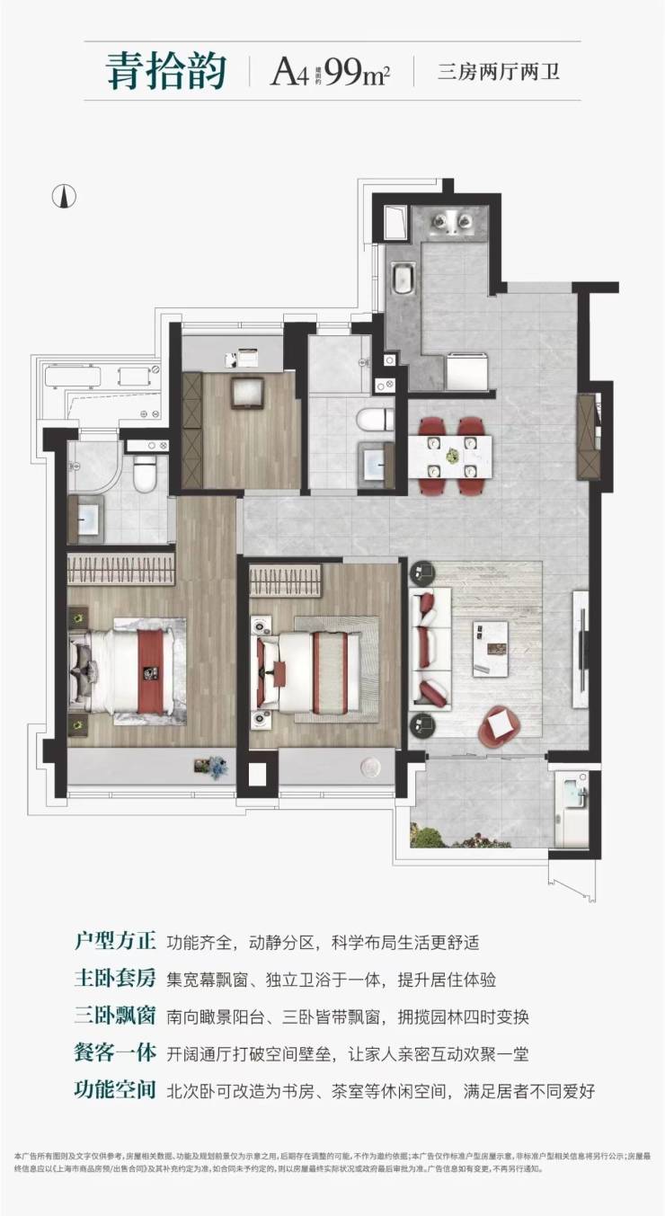 99㎡三房两厅两卫:3.5开间朝南,配备横厅设计