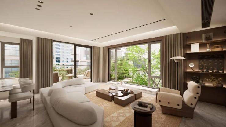 户户花园:首创"户户有花园、层层有露台"设计,上叠赠40-60㎡屋顶花园,中叠赠L型露台+挑空客厅(约16㎡),下叠赠40-300㎡庭院+70㎡地下室(层高5.2米)