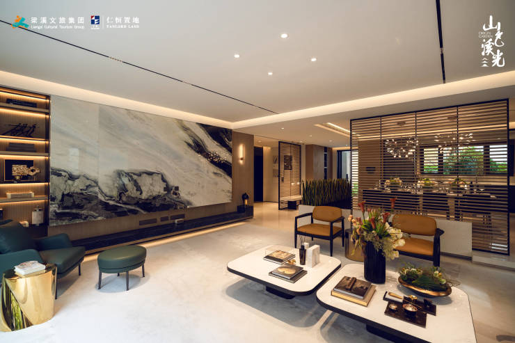山色溪光以"山水为境,光色为韵"为设计理念,首创"五维生态奢居体系",涵盖生态、建筑、智慧、健康、服务五大维度。项目依托无锡得天独厚的山水资源,打造约6万方立体山水园林,融入太湖石、惠山泥人等无锡文化符号,选用意大利卡拉拉白奢石、百年香樟等高端材质,呈现现代东方的美学意境。