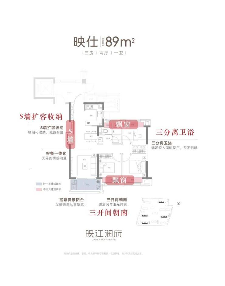 先看来这个性价比爆棚的建面约89㎡3房户型: