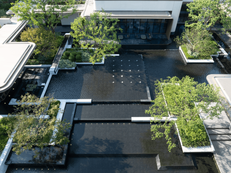 这是被称为童梦水院的儿童戏水场景。项目通过戏水池与户外卡座、外摆空间的结合,打造复合的社交场景,孩子们在水池中恣肆玩耍,大人在水岸边攀谈社交悉心陪伴,这不正是夏日生活的理想模样吗?