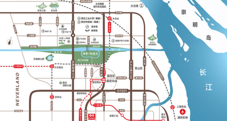 南门直通上海嘉定区新和路,北门连接太仓富达路,5min直达上海嘉定,30min至上海市中心。