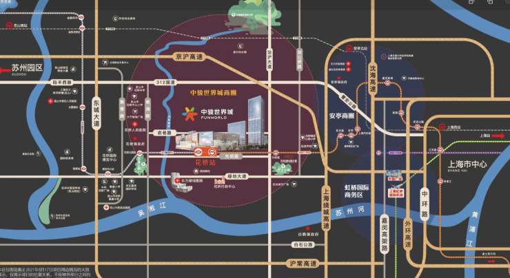 地铁配套:项目是真正意义上的“双轨上盖”,与上海地铁11号线花桥站2号口直接相连,步行仅3-5min即可抵达。早高峰10min一班,5min可达上海真如,15min直达徐家汇、前滩,30min抵虹桥枢纽,轻松融入上海核心商圈。在建的苏州S1号线将与11号线同站换乘,2026年通车后可直达苏州工业园区,实现沪苏双城通勤“零换乘”^。