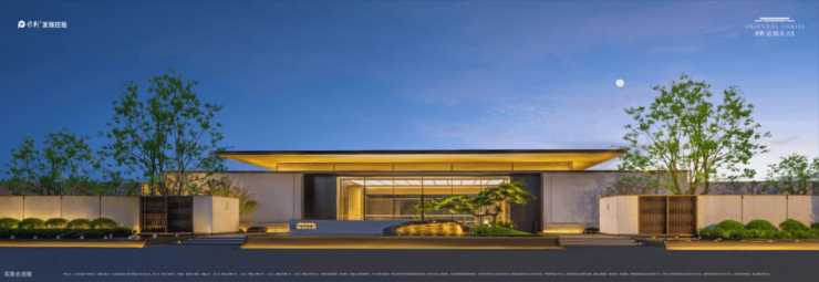 建筑美学:新中式风格,昆石同色石材搭配现代铝材、高透LOW-E玻璃。