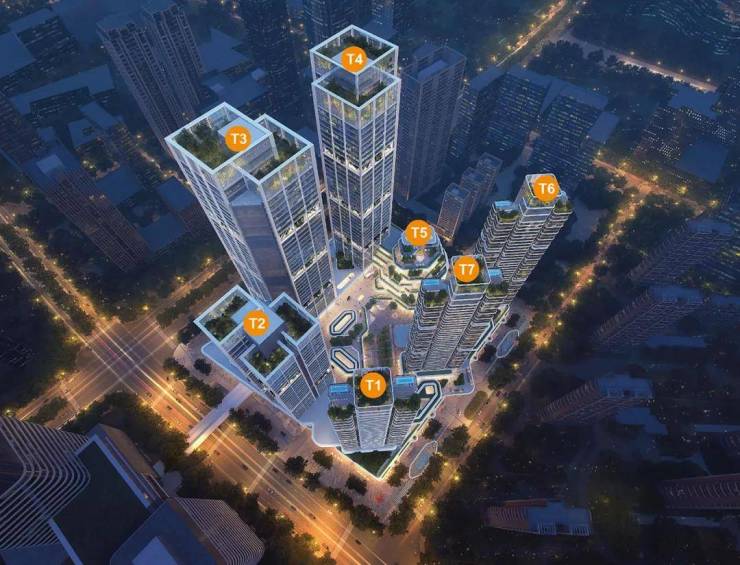 规划约200米门户双塔(T3、T4)、科技总部大楼(T5)、Service无界空间(T1、T6、T7)、国际潮流Mall&街区,8小时工作、8小时娱乐、8小时生活。