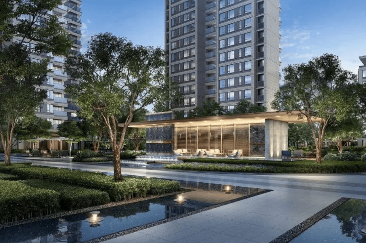 建筑风格:外立面采用现代简约风格,以高品质建材打造,线条流畅简洁,色彩搭配沉稳大气,彰显高端住区的质感。