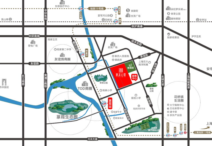 地铁直达:步行约700米直达苏州轨交S1线(昆山11号线)菉葭站,7站直达上海虹桥,融入“大虹桥”1小时生活圈。