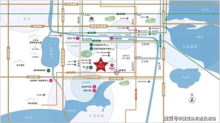 中小学:直线 3km 范围内有南京师范大学附属苏州石湖实验小学、碧波实验小学(枫津路校区)等;有 6 个中学,如苏苑高级中学、长桥中学等。此外,距项目约 2 公里的四星级高中苏苑高级中学正在建设中,苏州吴中外国语学校也已合作落地,教育资源丰富。