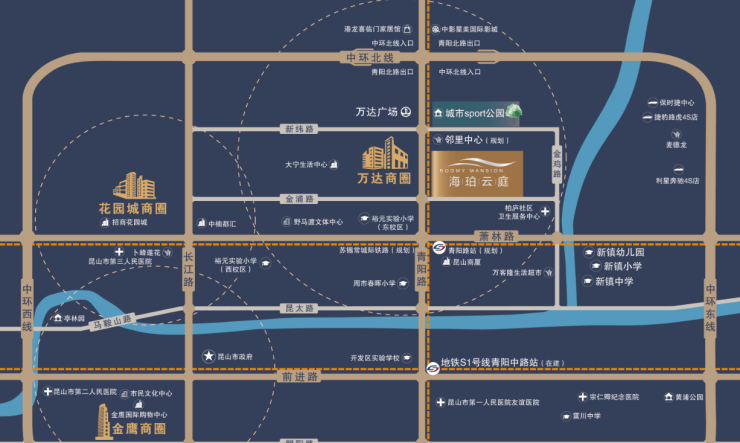 自驾出行:500米直达中环北线入口,15分钟通达昆山核心商圈;青阳北路(双向六车道改造完成)等主干道环伺