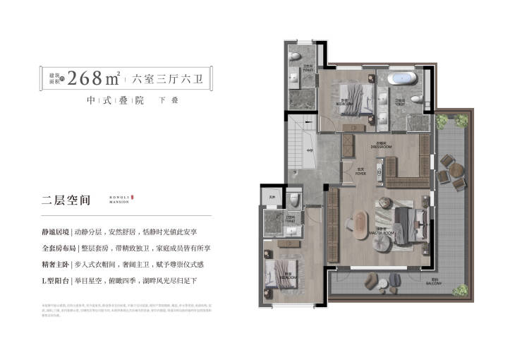 2、下叠245-275㎡(赠送院子65-300㎡,赠送地下室挑高5.6m,可隔2层,面积约117-150平。)