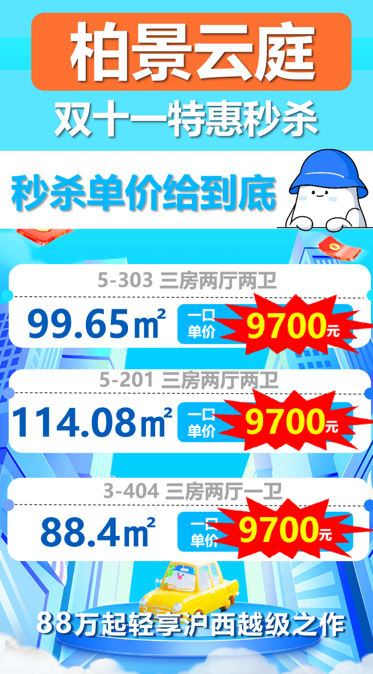 2025年最新销售动态显示,项目当前均价约1.1万元/㎡,总价区间88万-115万。主力户型包括89㎡三室两厅一卫、100㎡三室两厅两卫和115㎡四室两厅两卫,精装交付预计2027年9月交房。项目已于2025年9月27日开盘,目前处于火热销售阶段