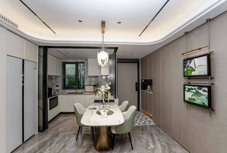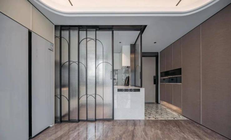 项目的厨房采用金属框+艺术玻璃移门,推拉丝滑颜值颇高!