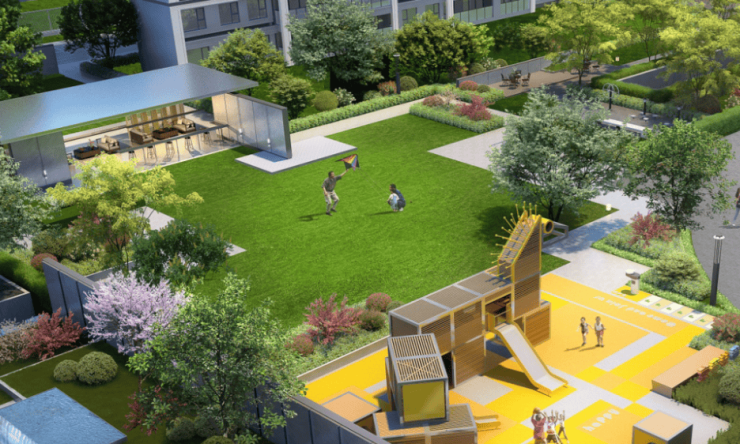 社区内绿化面积超 10,000㎡ ,打造阳光草坪、宅间组团、社区会客厅等多重景观空间