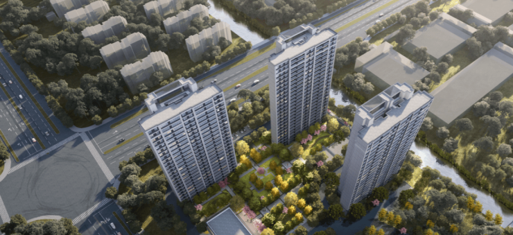 建筑品质 :外立面采用真石漆+玻璃幕墙组合,楼栋半围合布局,保障楼间距与私密性
