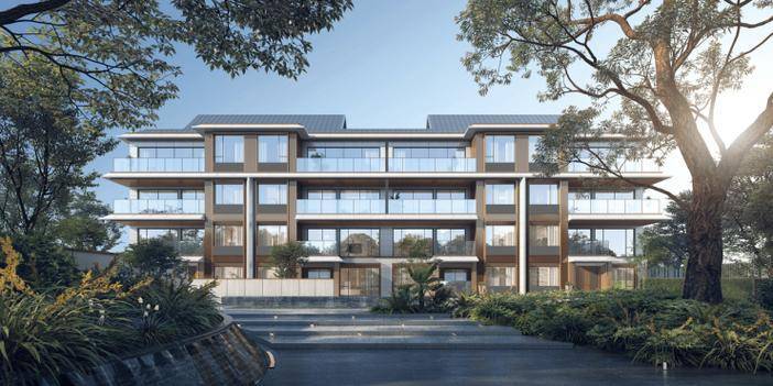 设计:洋房采用银灰色铝板+灰蓝色玻璃立面,叠拼产品主打湖居别墅体验