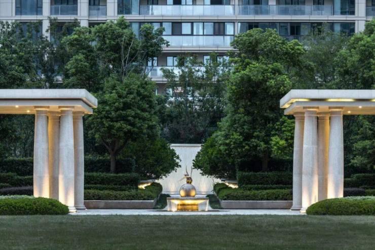 顶级配置:金色铝板+天然石材外立面,6米架空层,全石材风雨连廊