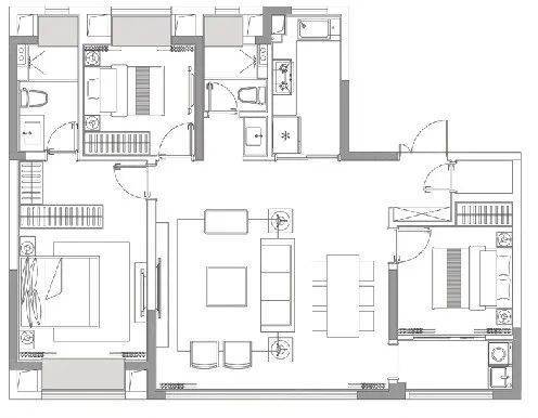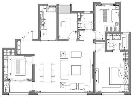 三加一房两厅两卫,功能性较强,主卧套房设计