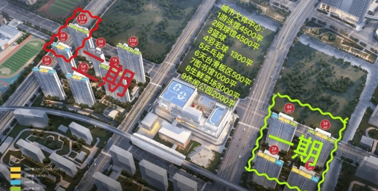 项目自带动感大湾商务广场,内含游泳馆、网球场、羽毛球馆等丰富业态