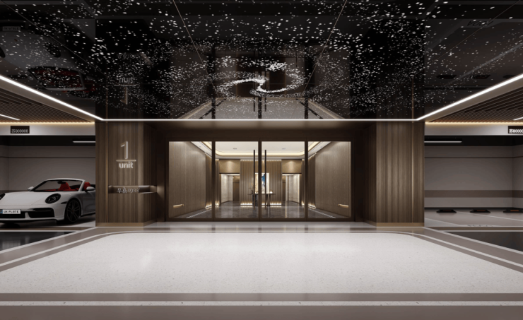 地下车库配备仿银河铝板星空顶,专属私密入户空间,点亮业主回家的好心情