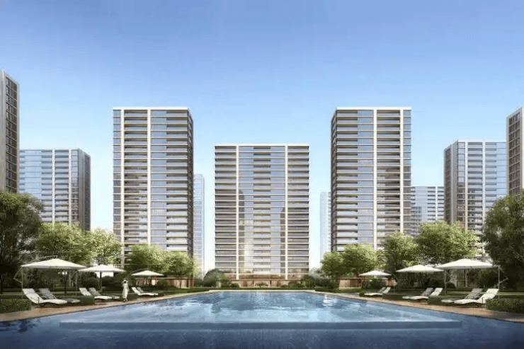 建筑形态:18幢16–17层小高层,采用台地式设计,整体抬高约3.2米,增强私密性与景观视野