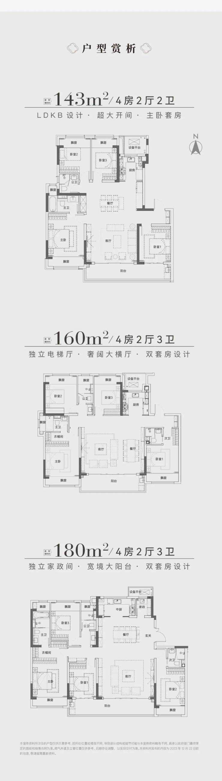 建面约180㎡户型,即为此精工理念的集大成者,踞守社区核心观景位,堪称改善标杆之作:
