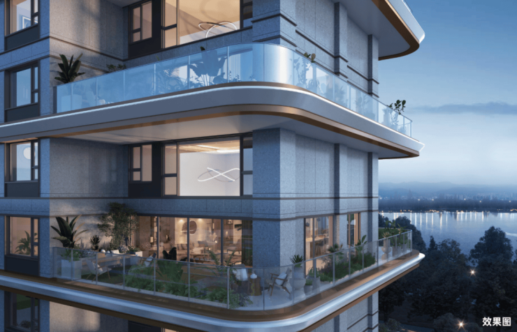 项目创新采用"空中庭院+垂直绿化+共享空间"三位一体设计理念, 实现"户户有露台,家家有庭院"的森林氧吧生活愿景。外立面采用180°-360°环幕式露台设计,突破传统四代住宅奇偶错层布局,构建"湖境—园境—院境"的立体景观空间。