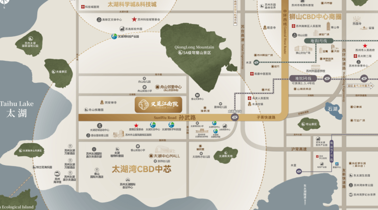 区位价值:项目位于苏州吴中太湖度假区孙武路与香山路交汇处,是太湖度假区核心板块,背靠穹窿山,面朝太湖,享有得天独厚的自然景观资源。