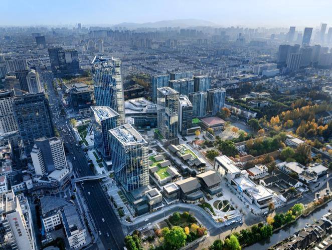 项目由 2 栋超甲级写字楼、一座重奢商场、一座园林式商业步行街,四座酒店(超五星级酒店丽思卡尔顿、万豪行政公寓、新加坡雅诗阁公寓等)以及一座艺术馆构成。在这里,工作、购物、休闲、艺术欣赏一站式满足,生活品质全面提升。