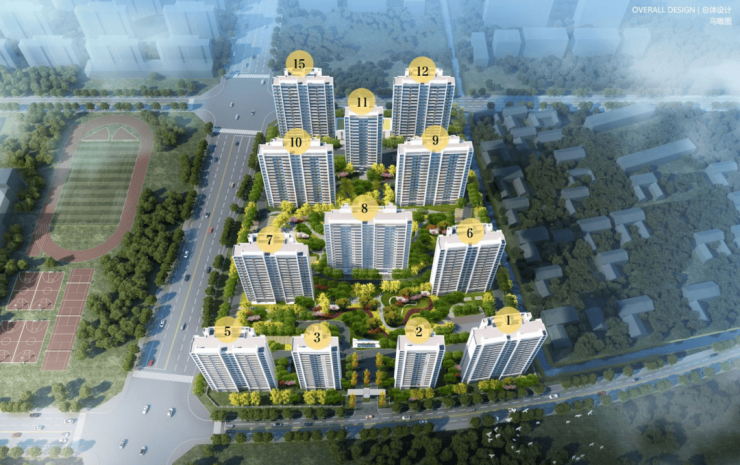 社区景观 :绿化率 37.2% ,采用“一轴一环五里”设计,中央景观轴+健康环步道,配亲子乐园、慢跑道、口袋公园