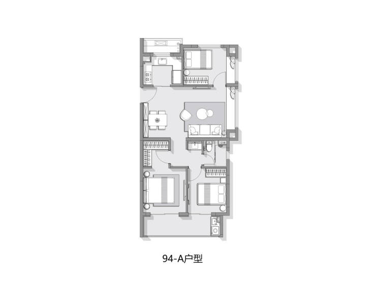 主力户型为建面约94-122㎡的3-3+1房,采用LDKB一体化设计(客厅、餐厅、厨房、阳台一体化),空间利用率达76-79%,优于区域平均水平。具体特点包括: