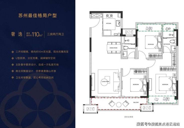 虽部分户型已售罄,但曾推出的 96㎡奢悦 3 室 2 厅 1 卫户型备受关注,该户型为平层结构,朝南设计,采光充足,布局合理,满足刚需及改善型家庭的居住需求 。