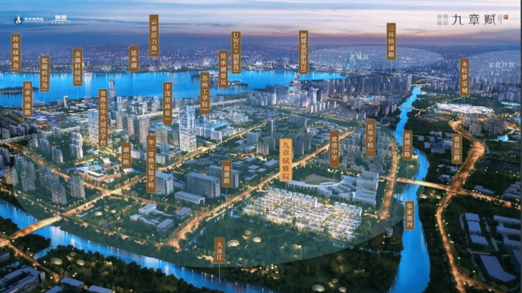 作为中新昆承湖园区 重点建设项目,九章赋所在区域被商务部点名支持,规划建设低碳科技岛、数字科技岛等"一湖十岛"功能片区,被誉为"下一个金鸡湖"