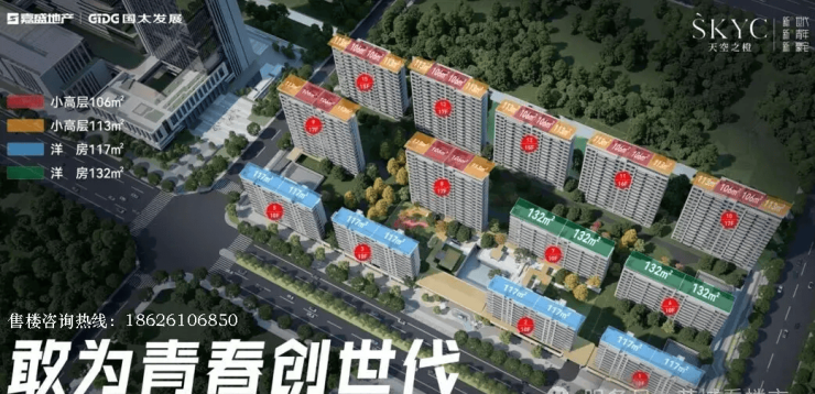 嘉盛天空之橙由嘉盛地产与国企国太发展联手打造,专为年轻人定制“顶豪级”小户型豪宅。项目占地面积适中,规划了6幢10层洋房和7幢15-17层小高层,容积率仅1.8,属于纯低密社区,居住舒适度极高。项目预计2027年底交付,目前正处于热销尾声阶段,余货稀缺,尤其是106㎡的爆款户型已售出超85%,剩余房源多为中高楼层,选择有限。