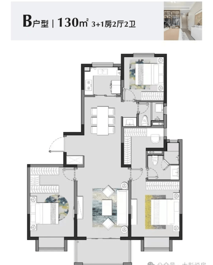 192㎡ 复式四居:总价约450万,四卫配置,适合多代同堂改善家庭