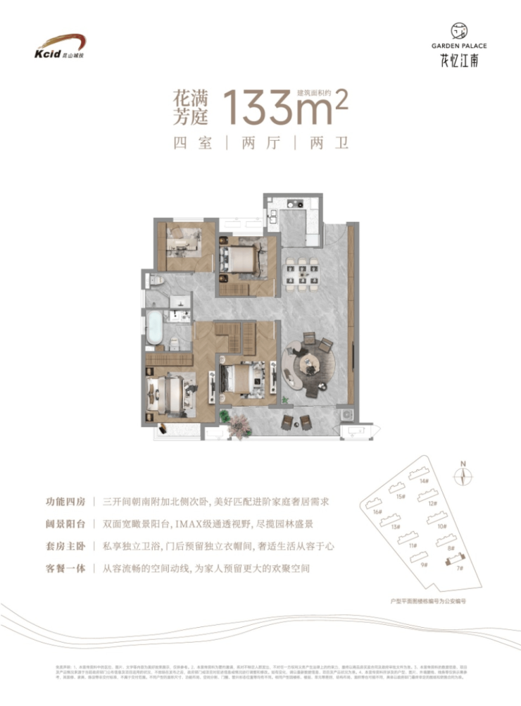 133㎡ 3室2厅2卫 239 – 255 18,000 – 19,200 改善首选,双阳台设计,空间利用率高