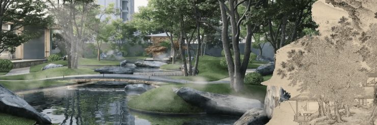 社区景观设计 :采用“现代形,东方意”的设计理念,打造低密奢居环境