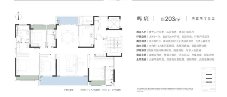 主力户型:建面约143㎡、170㎡、203㎡四室格局