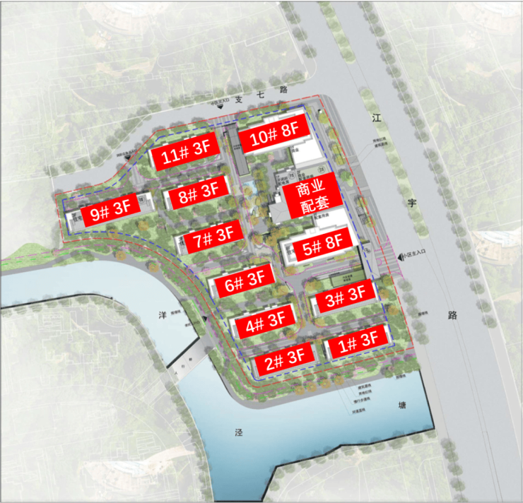根据规划公示显示,该项目将打造11幢住宅,其中9幢3F联排,2幢8F洋房,比较纯粹的低密改善住宅。