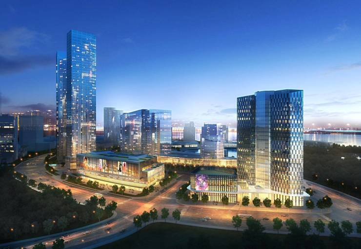 建筑形态:50层超高层全玻璃幕墙地标建筑