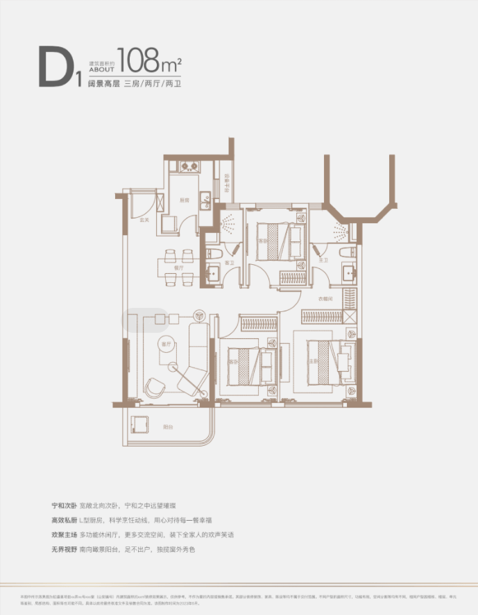 奢阔主卧套间,搭配专属衣帽间和卫生间,主人起居尽享私密与奢华。