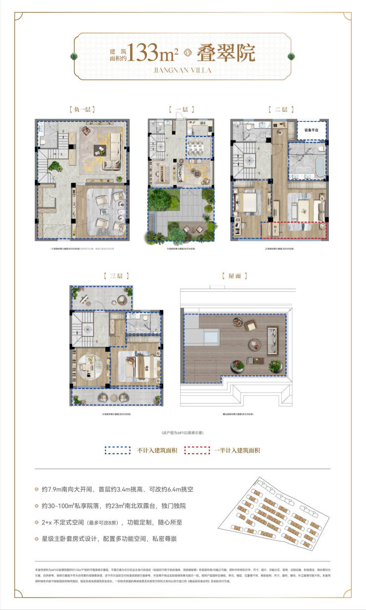 1. 联排院墅(建面约133–158㎡)