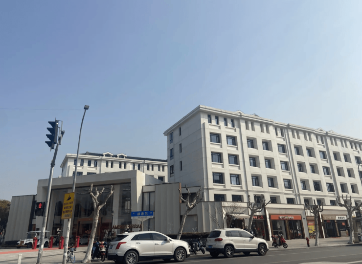 项目一期已建成,实景呈现法式纯白建筑与铝板外立面,品质可见。