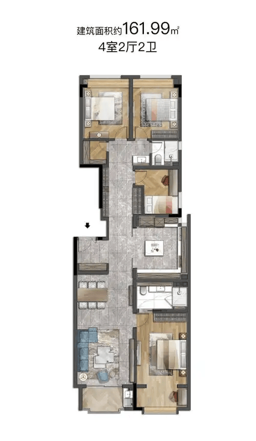 约161.99㎡ 4室2厅2卫,总价约955万元