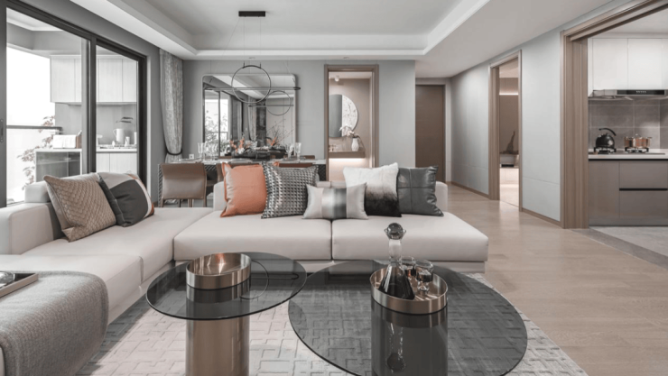 公共区域:法式白绿主基调,融合东方与法式设计元素