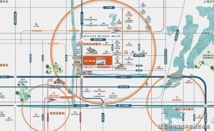 主干道路:中环北线、相城大道、苏州北站高架路环绕,连通全城
